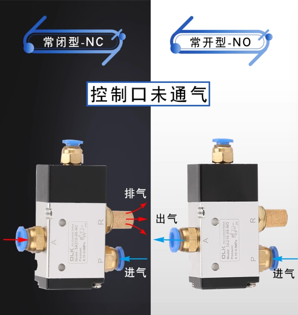 NC (ノーマルクローズ): 空気が存在しない場合、バルブは閉じており、信号/空気圧によって駆動された後にのみ開くことができます。