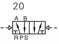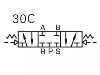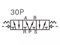 OLK エアパイロットバルブの動作原理 (3A & 4A シリーズ) (P=入口 A=B=出口、R=S=排気)