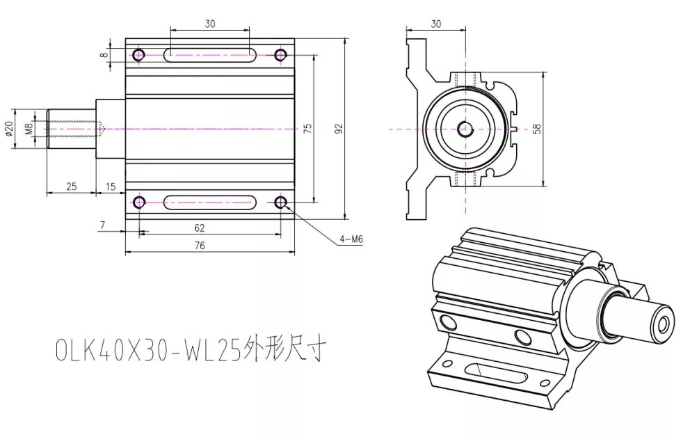 彫刻機位置決めシリンダー外形寸法: