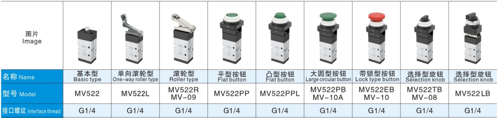 MV522 メカニカルボタンバルブのねじ山は G1/4 で、圧力範囲は 0 ~ 0.8Mpa で、潤滑剤は必要ありません。メンテナンスとサービスが容易になり、ダウンタイムとメンテナンスコストが削減されます。