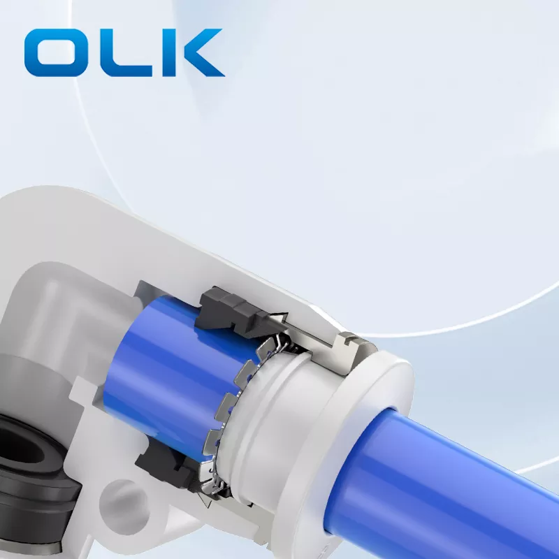 Quick Connecting Tubeフィッティング内部構造:リリース、亜鉛合金カードセット、ロッククリップスプリング、ロックスリーブ、クラスプシーリングリング、高強度プラスチック