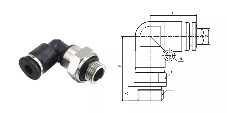 チューブフィッティングのPL-Gの肘の押しは、閉じ込められたスペースでの使用に最適な90度の肘コネクタとGスレッドです。