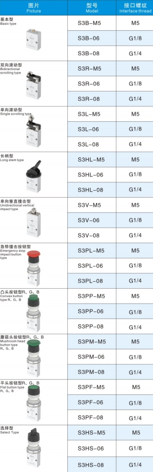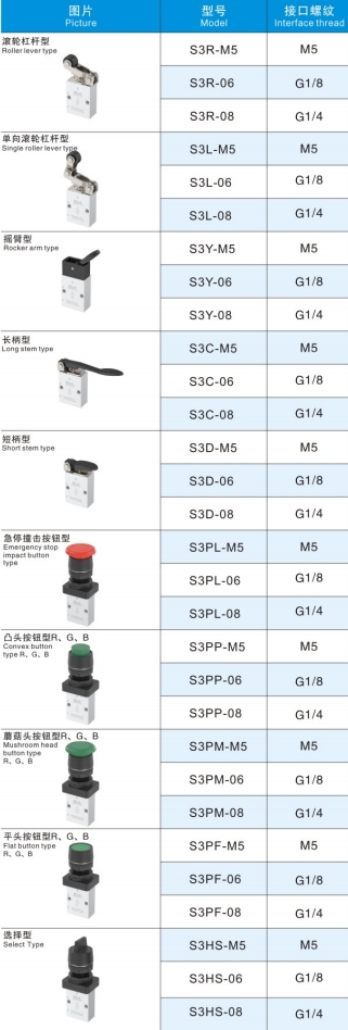 2. S3PF、S3PM、S3PP、S3PL、S3Y、S3HS、S3C、S3Dシリーズは手動操作であり、さまざまな条件で便利に使用できるようにさまざまな構造形状のコントロールヘッドを備えています。