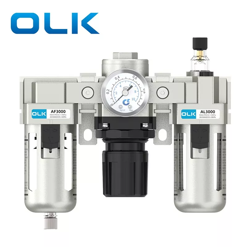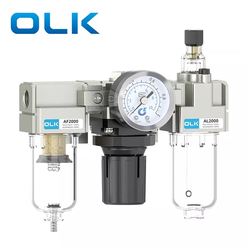 フィルターを使用すると、空気から水分や不純物が除去され、ピストンやシールリングへの摩擦による損傷を効果的に軽減できます。ルブリケータを使用してタービン オイルを追加することができ、タービン オイルは空気によって運ばれ、シリンダ ピストンとシール リングを潤滑します。プレッシャーレギュレーターで吸入空気圧を調整でき、作業効率がさらに向上します。